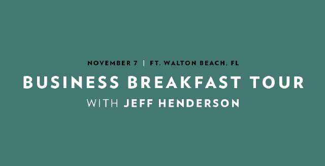 If you’re looking to grow your business and career, join us for the Business Breakfast Tour at Beachside Church on Thursday, November 7. We’ll discuss two questions that every organization and individual should leverage to create professional and personal growth. Our speaker will be Jeff Henderson, the author of “Know What You’re FOR.” Jeff is an entrepreneur, speaker, pastor and business leader who was recently named by Forbes Magazine as one of twenty speakers you shouldn’t miss. You’ll receive breakfast and a copy of the new book, “Know What You’re FOR: A Growth Strategy for Work, An Even Better Strategy for Life.” Space is limited so reserve your tickets now! Beachsidecc.org/breakfast
