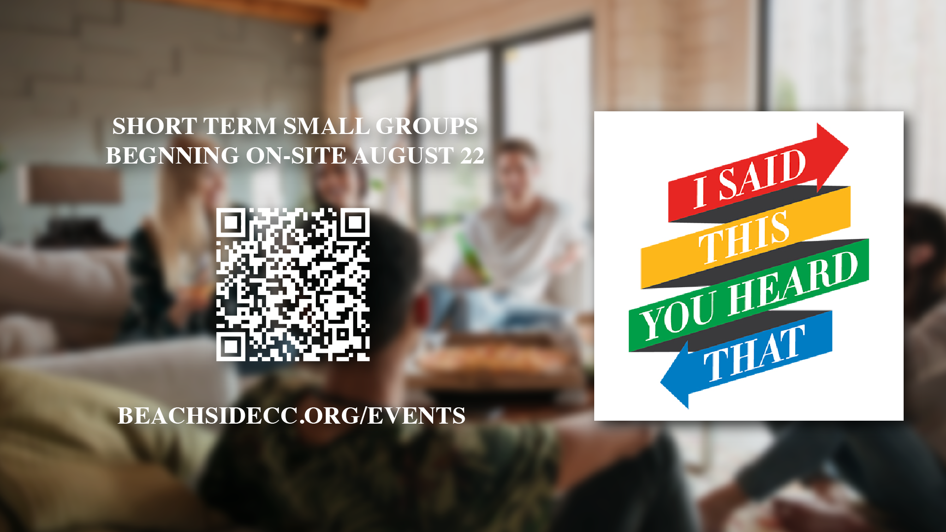 Beachside Community Church 200 Racetrack Road, Fort Walton Beach, FL, United StatesWe are doing something uniquely different for groups this fall! Want to find a group and learn more about yourself and others? Have you wondered why some people you connect to better than others? Join us in the auditorium at Beachside for 7 weeks as we study together with your new group or existing group […]